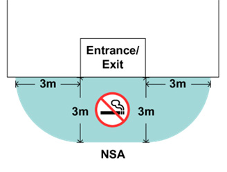 First of all, if a premises has multiple entrances / exits, the 3-meter no smoking area rule only applies to those exclusively used for access to the premises. If an entrance / exit is not an exclusive one for the premises, the 3-meter no smoking area rule does not apply.