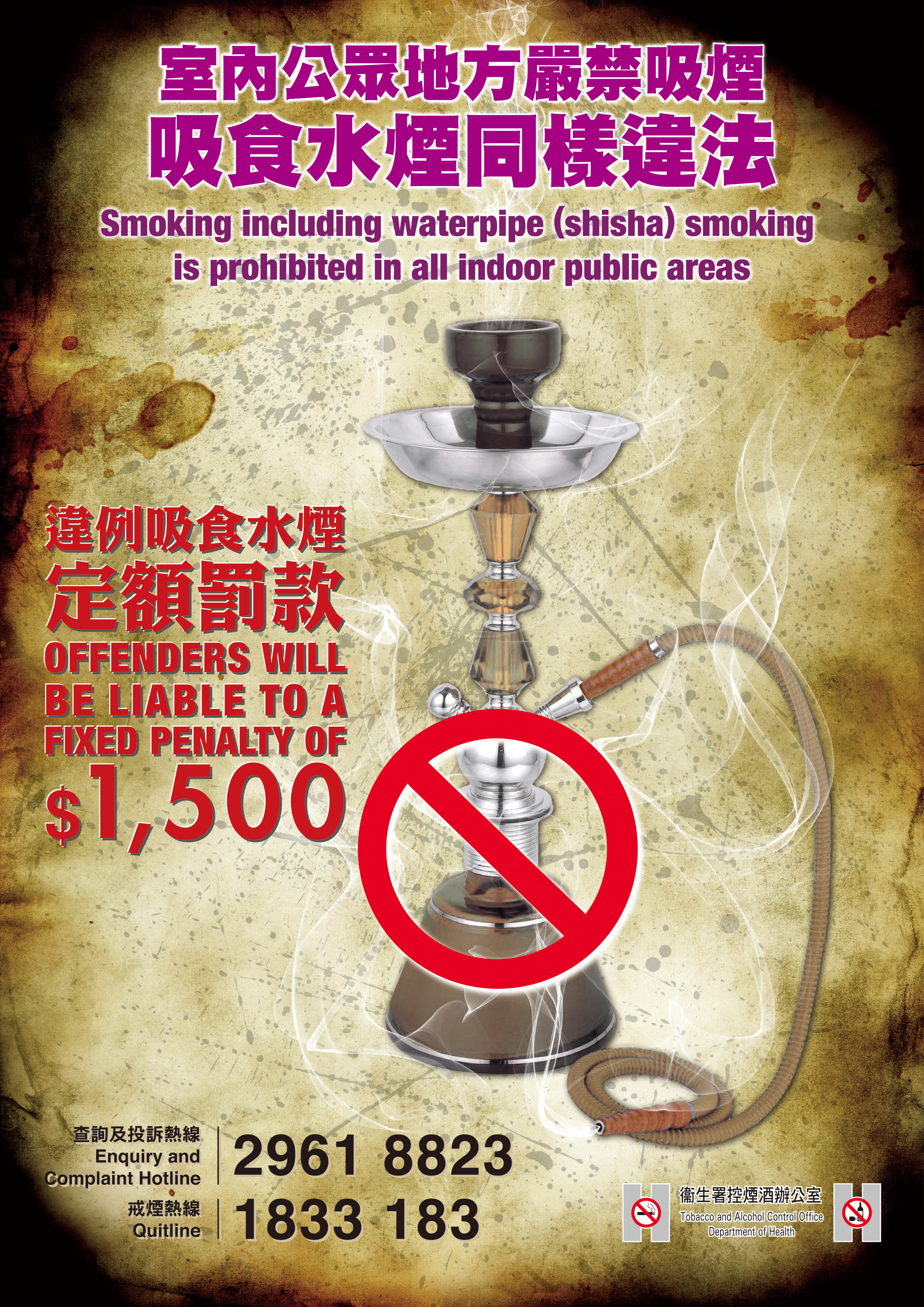 室內公眾地方嚴禁吸煙 吸食水煙同樣違法 |